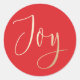 Añada un toque festivo a los regalos y sobres de sus Navidades en esta temporada navideña con estos elegantes pegatinas de la Alegría. Los pegatinas personalizados de vacaciones muestran "Alegría" en un guión falso de Relieve metalizado dorado con un fondo rojo o color de su elección.