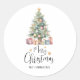 Pegatina Redonda Elegante Árbol de Navidad acuarela y presentación