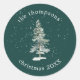 Pegatina Redonda Elegante árbol de Navidad Snowfall Green