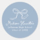 Celebre el logro de su graduado con estas pegatinas personalizadas de graduación, que presentan un lazo blanco dibujado a mano sobre un fondo azul suave. El nombre del graduado se muestra elegantemente en una escritura blanca caprichosa, con su escuela y año de graduación que se muestran a continuación para un toque personalizado. Estas pegatinas versátiles son perfectas para sellar sobres, agregar un toque personal a los favores de la fiesta, decorar bolsas de regalo y más. Con su encantador diseño y detalles sofisticados, estas pegatinas son la forma perfecta de agregar un toque elegante y memorable a su evento de graduación.
