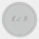 Un elegante pegatina redondeado clásico azul y marrón, puede insertar sus iniciales en la plantilla. Con un fondo azul y una fuente y borde marrón, personaliza el tuyo hoy!