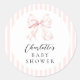 Pegatina Redonda Elegante Baby Shower Bow Rosa