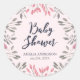 Pegatina Redonda Elegante Baby Shower floral de rosas rosadas