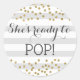 Pegatinas redondos de ducha para bebés "Está lista para pop" con franjas blancas y grises y purpurina de confeti falso. Se pueden utilizar para bolsas de palomitas, botellas de champán pequeñas u otros favoritos de los huéspedes. Rellene su tema con una invitación, carteles, decoraciones y mucho más de nuestra colección Gris claro y oro.