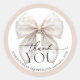 Pegatina Redonda Elegante Baby Shower Pearl Bow White Gracias