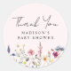 Pegatina Redonda Elegante Baby Shower Rosa Flor Silvestre Gracias