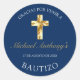 Pegatina Redonda Elegante Bautismo de Bebé Azul Dorado Gracias