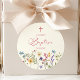 Pegatina Redonda Elegante bautismo floral de flores silvestres