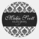 Pegatina Redonda Elegante Black Damask Wedding Favor