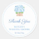 Gracias pegatinas por cualquier evento (mostrados aquí por una ducha de boda, pero todos los campos de texto son personalizable). El diseño presenta un plantador de mimbre acuarela lleno de nubes de hortensias azules (pintado originalmente a mano por mí, antes de ser escaneado en forma digital).
