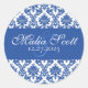 Pegatina Redonda Elegante Blue White Damask Wedding Favor