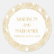 Pegatina Redonda Elegante Boda de Art Deco Blanco y Blanco