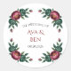 Pegatina Redonda Elegante Boda de Borgoña y Peonía Esmeralda