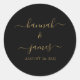 Pegatina Redonda Elegante Boda de caligrafía de oro negro