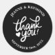 Pegatina Redonda Elegante Boda de caligrafía negra gracias
