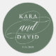 Pegatina Redonda Elegante Boda de caligrafía verde profundo y blanc