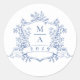 Pegatina Redonda Elegante Boda de Flores del Jardín Francés Azul