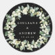 Pegatina Redonda Elegante Boda de guirnalda negra y eucalipto