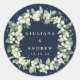 Pegatina Redonda Elegante Boda de guirnaldas de la marina Snowberry