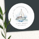 Pegatina Redonda Elegante Boda de la capa marina del barco de vela