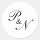 Pegatina Redonda Elegante Boda de Monograma Blanco y Negro