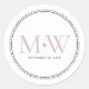 Pegatina Redonda Elegante Boda de Monograma Rosa Rubor
