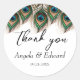 Elegante Pegatina redondo Boda de plumas de pavo real