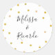 Pegatina Redonda Elegante Boda de puntos de polka dorada