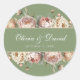 Pegatina Redonda Elegante Boda de Rubor Sage Green Peonies