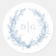 Pegatina Redonda Elegante Boda Escudo azul victoriano