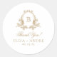 Pegatina Redonda Elegante Boda Escudo de Monograma Dorado