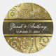 Pegatina Redonda Elegante Boda étnico de Boho Verde Espiral de oro