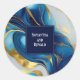 Pegatina Redonda Elegante Boda Faux Gold, Blue and White Marble