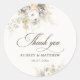 Pegatina Redonda Elegante Boda Floral Blanca gracias