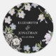Pegatina Redonda Elegante Boda floral blanco y negro