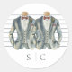 Pegatina Redonda Elegante Boda gay, dos novios en traje