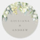 Pegatina Redonda Elegante Boda Greige Snowberry+Eucalyptus