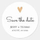 Pegatina Redonda Elegante boda limpia corazón dorado salvar la fech
