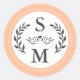 Pegatina Redonda Elegante Boda Moderno Monograma Peach Trendy Favor