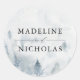 Pegatina Redonda Elegante Boda personalizado de la selva invernal