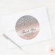 Pegatina Redonda Elegante Boda rosado Purpurina plateado