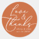 Pegatina Redonda Elegante Boda simple amor y gracias Terracotta