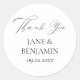 Pegatina Redonda Elegante Boda simple negro y blanco gracias