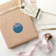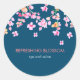 Moda elegante bonito rosa flor pegatina redondo clásico con flor de cerezo rosa bonito sobre fondo azul con texto rosa y blanco para que usted lo pueda personalizar con su propio nombre o mensaje. Ideal para marca, envasado o como pegatinas a favor con fines promocionales.