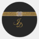 Pegatina Redonda Elegante Broche de Brillo Negro y Dorado Boda