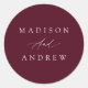 Pegatina Redonda Elegante caligrafía Boda de Borgoña
