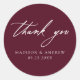 Pegatina Redonda Elegante caligrafía Boda de Borgoña Gracias