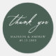 Pegatina Redonda Elegante caligrafía Boda Verde Gracias
