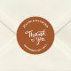 Pegatina Redonda Elegante caligrafía de terracota Gracias Boda