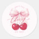 Pegatina Redonda Elegante Cereza en la Parte Superior Despedida de